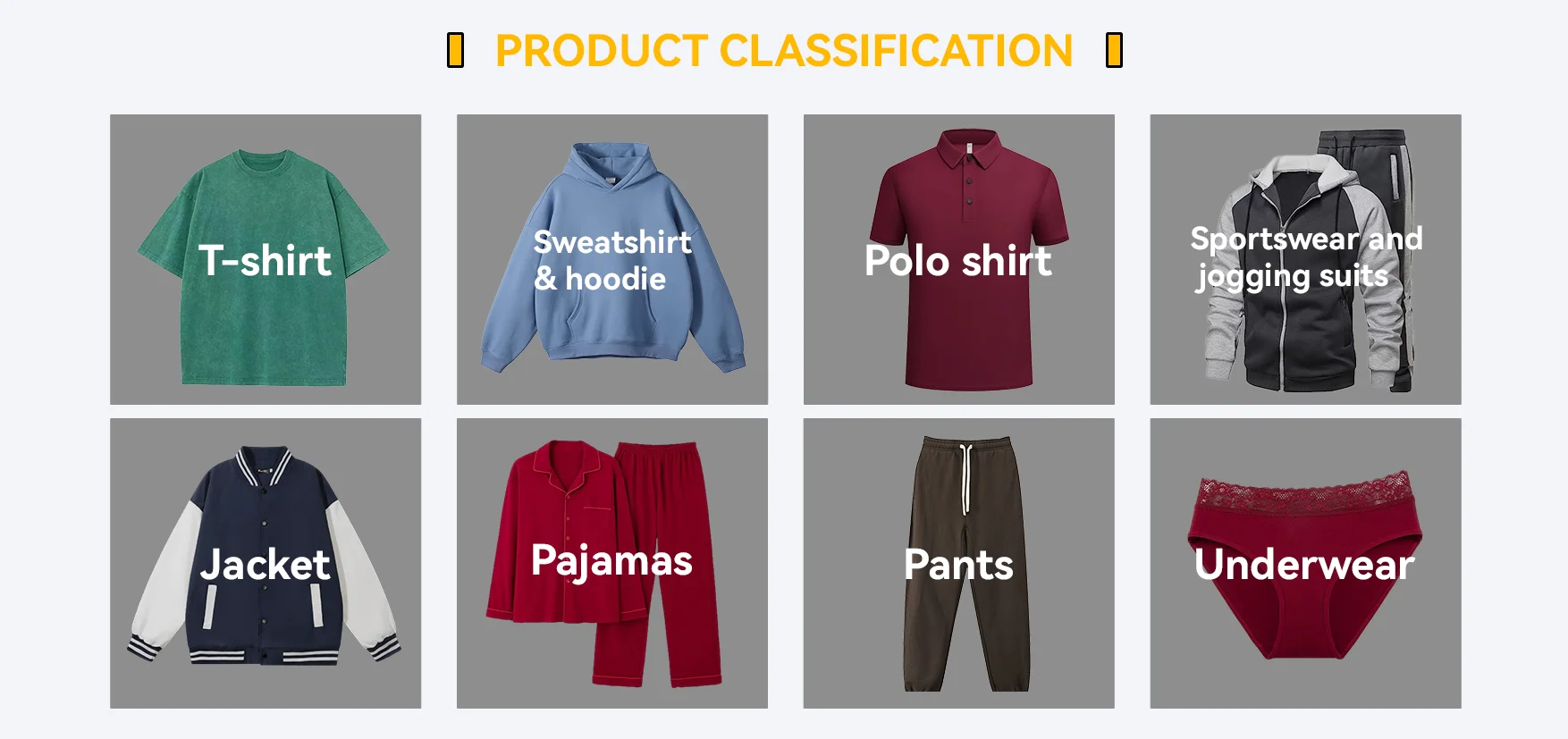 주요 제품:티셔츠, 후드, 폴로 셔츠, 원피스, 요가 옷