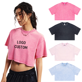 شعار مخصص غسل حمض خمر قطع القطن تي شيرت أعلى المحاصيل الساخنة مثير فتاة النساء تيشيرتات اقتصاص تي شيرت النساء الشارع الشهير
