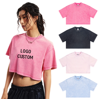 Benutzer definiertes Logo Acid Wash Vintage Cut Baumwolle T-Shirt Crop Top Hot Sexy Mädchen Frauen T-Shirts T-Shirt Kurzes T-Shirt Frauen Streetwear